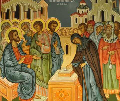 Şi chemând la Sine pe ucenicii Săi le-a zis: Adevărat grăiesc vouă că această văduvă săracă a aruncat în cutia darurilor mai mult decât toţi ceilalţi. Pentru că toţi au aruncat din prisosul lor, pe când ea, din sărăcia ei, a aruncat tot ce avea, toată avuţia sa. (Marcu 12, 41-44)